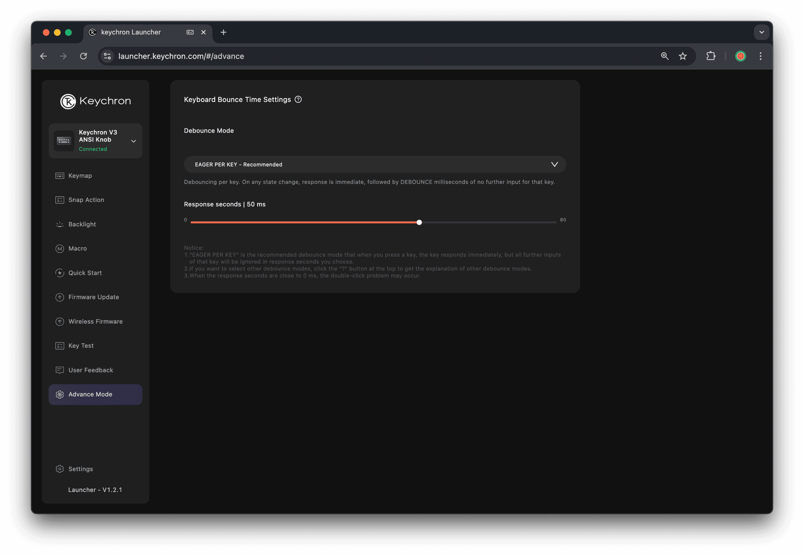 Double key presses on Keychron keyboards are usually caused by debounce behavior, not hardware failure. In most cases, the issue can be fixed through firmware and launcher settings. In this guide I’m using Keychron V3 keyboard.